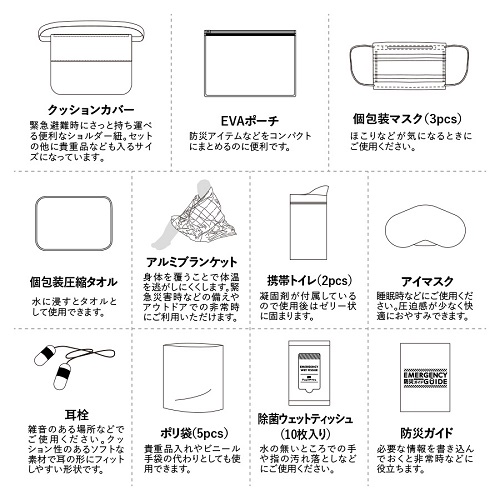 /ウェットティシュ/アルミブランケット/圧縮タオル/マスク/防災ガイド